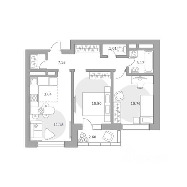 Продаётся 3-комнатная квартира 1638, площадью 52,79 м², на 7 этаже в ЖК "Ильинойс" корпус 3. Стоимость — от 15402816 руб. Квартира с отделкой, планировка односторонняя, окна на улицу.