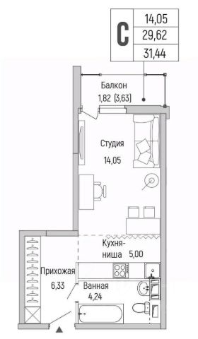 на 9 этаже из 10, секция 12, в ЖК Riga Hills площадью 31.44 кв.м. ЖК Riga Hills (Рига Хиллс) яркий жилой комплекс бизнес-класса в экологически чистом районе Подмосковья, всего в 12 км от МКАД по Новорижскому шоссе.