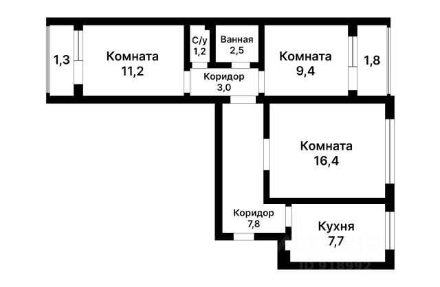 Формат Евро 3: просторная кухня-гостиная 19,8 кв.м создает комфортные условия принятия гостей, две изолированные спальни 10,6 кв.м и 10,9 кв.м.