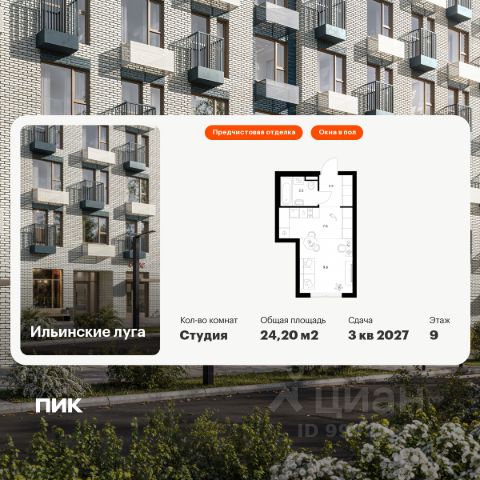 Продаётся квартира-студия площадью 29 кв.м на 5 этаже 9 этажного дома (Корпус 4.3, Секция 4) проекта ПИК Ильинские луга. Светлый просторный подъезд на уровне земли, функциональная планировка, большие окна, предчистовая отделка. Жилой район "Ильинские луга" находится в 10 километрах от МКАД по Новорижскому шоссе, в 20 минутах на автомобиле от станций метро "Волоколамская", "Тушинская" и "Строгино". В будущем ближе к проекту, в 9 минутах пути на машине, откроется станция "Ильинская" Рублёво-Архангельской линии, которая будет соединять Арбатско-Покровскую линию и Большую кольцевую линию. Сейчас в квартале начались продажи в корпусах 3.2, 3.3, 3.4, 3.5 и 3.6. "Ильинские луга" — масштабный проект, в который входит девять детских садов, четыре школы и поликлиника. Он строится в престижном и экологичном районе среди лесов и памятников природы. За 5 минут от жилого квартала можно доехать до Рублёво-Успенского шоссе, а за 30 минут — до центра Москвы. До крупного торгового центра "РИГАМОЛЛ" всего 5 минут на автомобиле, а до ТЦ "Твой дом" и гипермаркета "Глобус" — 10 минут. В "Ильинских лугах" строятся только девятиэтажные дома — такая архитектура соответствует спокойной жизни за городом. В каждом дворе-парке есть места для отдыха, детские и спортивные площадки. А ещё, здесь уже открыт большой PlayHub "Гравити" — современное игровое пространство с космической тематикой, холмами, зонами для игр и отдыха жителей любого возраста. На первых этажах уже работают магазины, кафе и пекарни. Места для отдыха от "Ильинских лугов" тоже недалеко: 10 минут на машине — и вы в музее-усадьбе "Архангельское". Также рядом находится Лохин остров — памятник природы, где водятся речные черепахи, есть места для кемпинга и возможность сплавиться по реке. Артикул 1012134 (Застройщик ООО "СЗ "ГРАДОЛИМП")