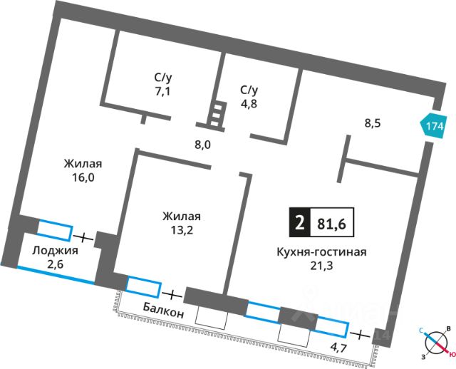 Продаётся 2-комнатная квартира в строящемся доме (Корпус 41), срок сдачи: II-кв. 2026, общей площадью 81.6 кв.м., на 2 этаже. Новый жилой комплекс "Отрада на реке" от Застройщика Отрада Девелопмент