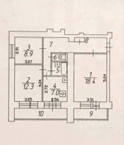 Квартира 49,5 м², жилая площадь 31,2 м². Расположена на 6 этаже, все окна выходят на одну сторону.
