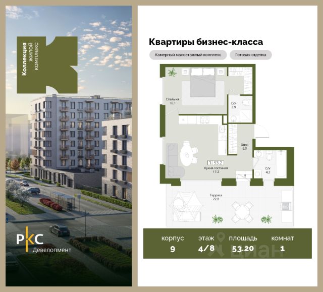 Продается уютная студия на 2 этаже от застройщика. Общая площадь 28,3 кв.м. На выбор представлены 3 вида дизайнерской отделки с использованием качественных материалов. Высота потолков 3 м. ЖК "Коллекция" расположен на северо-западе от Москвы, в поселке Нахабино, всего 13 км от МКАД. Прекрасная экология и живописная природа, отсутствие промышленных зон и вредных предприятий. В проекте планируется строительство 5 корпусов средней этажностью (4-8 этажей) с террасами на угловых секциях и торцевых частях зданий, строительство собственной инфраструктуры: три детских сада, школа, поликлиника, физкультурно-оздоровительный комплекс. Жителям будут доступны машино-места в подземном паркинге, кладовые помещения. Удобная транспортная доступность позволит Вам доехать на автомобиле за 26 минут до метро "Митино", 30 минут до метро "Пятницкое шоссе", дойти до станции МЦД-2 Нахабино за 29 минут. В ближайшей перспективе - расширение местной дорожной сети и запуск новых маршрутов до ж/д станций и станций метро. Благоустроенная территория двора, позволит Вам не покидать сам жилой комплекс. Масштабное озеленение и множество площадок отдыха для взрослых и детей. Детские площадки выполнены в природных материалах, игровые комплексы с бизибордами, развивающие игровые установки для игр с песком. Спортивная инфраструктура: столы для настольного тенниса, тренажеры, гимнастический комплекс. Особую прелесть комплексу придает близость зеленых массивов. В пешей доступности находятся парк Дружба, загородный клуб "Moscow Country Club", парк имени Карбышева. Это располагает к приятным прогулкам и спокойному отдыху жителей комплекса.