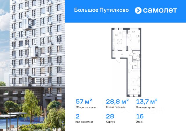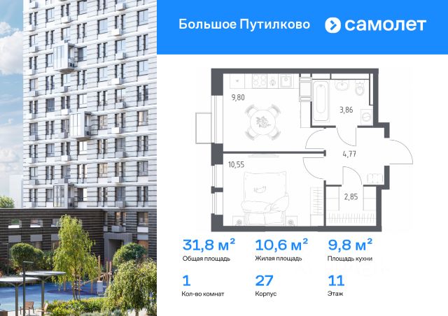 Строим кварталы для жизни с заботой о будущем. Предлагается 1-комнатная квартира комфорт-класса 31,83 кв.м в корпусе 27 на 11 этаже, в ЖК "Большое Путилково" Квартира с чистовой отделкой. Доступность дополнительных опций уточняйте у застройщика. Приобрести квартиру возможно по специальным акциям от застройщика, с текущими условиями акций можно ознакомиться в блоке "Акций". Цена динамическая и может отличаться, уточняйте актуальность у застройщика. "Большое Путилково" — масштабный жилой комплекс рядом с Алешкинским и Новогорским лесопарками. Мы уже построили и открыли 3 детских сада и школу, на первых этажах корпусов работают магазины, аптеки, кафе и пекарни. Удобное расположение проекта позволяет всего за 10 минут добраться до 4 станций метро. Во дворах обустроены детские площадки и зоны для отдыха. Все квартиры сдаются с готовой отделкой - переезжайте сразу после получения ключей!