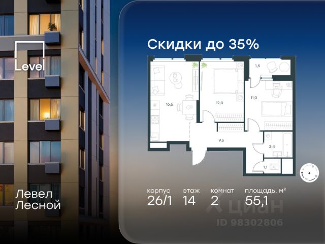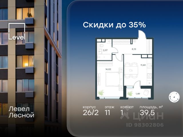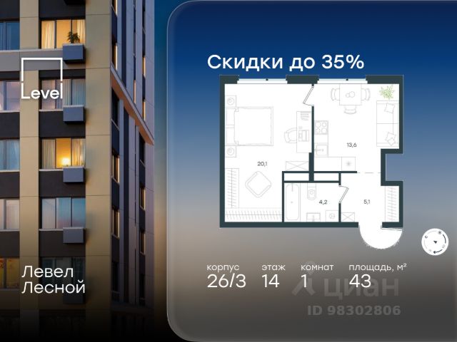 Цена указана с учётом скидки при 100%-й оплате, несубсидированной ипотеке, рассрочке (кроме программы "Рассрочка 0%"). В районе, утопающем в густой зелени лесов, многочисленных парков и скверов, продаётся 1-комнатная квартира площадью 33.60 кв.м с отделкой white box. Квартира расположена на 2 этаже в жилом комплексе комфорт-класса Левел Лесной (компания Level Group/Левел групп). Жилой квартал Левел Лесной расположен в посёлке Отрадное Красногорского района Московской области. Это уникальный природный уголок вблизи района Митино. Посёлок окружён обширными лесными массивами. Обилие зелени создаёт благоприятный экологический фон и превращает этот район в оазис спокойствия и единения с природой. Расположение и инфраструктура: - Район окружен роскошной зеленью лесов и парковых зон, занимающих территорию свыше 1 000 гектаров, среди них лесопарк внутри жилого комплекса, загородный парк "Отрада", Митинский лесопарк, набережная реки Синички. - Идеальные условия для активного отдыха в любое время года: пешие и велопрогулки, бег, зимой - лыжи и катание на ватрушках. - На территории ЖК - частная школа "Светлые Горы", входящая в топ лучших школ Москвы и Подмосковья (Forbes Education, 2023), и детский сад, в пешей доступности расположены 9 детских садов. - На территории жилого комплекса - сетевые супермаркеты, локальные магазины, аптеки, салоны красоты, рестораны и другие объекты инфраструктуры в сданных корпусах. В 12 мин. пешком - крупный торговый парк "Отрада" с гипермаркетами, кинотеатром и детскими развлечениями. Отличная транспортная доступность: - 25 мин. пешком до станции метро "Пятницкое шоссе"; - 28 мин. на автобусе до станции метро и МЦД-2 "Волоколамская"; - 11 мин. на авто до МКАД; - 25 мин. на авто до ТТК. Продуманный архитектурный проект: - Концепция проекта Левел Лесной разработана бюро СПИЧ; - Высотность комплекса до 15 этажей с уникальными видами на лесные массивы и город; - Высота потолков до 3 м; - Современные окна высотой до 1,6 м, в части квартир предусмотрены окна в пол. Высота подоконников 0,6 м. Благоустройство: Продуманное пространство и аура приватного европейского городка рождают чувство лёгкости и расслабления у каждого, кто попадает на территорию проекта. Концепцию общественных площадок разработали в партнёрстве два архитектурных бюро: Highlight Architecture и SCAPE. В безопасных дворах без машин каждый обязательно найдёт себе место для вдохновения, отдыха и спорта. Купить квартиру первичка в городском округе Красногорске Московской области.