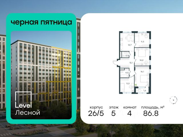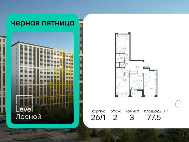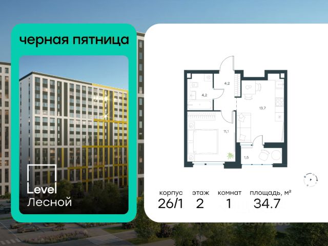 Цена указана с учётом скидки при 100%-й оплате, несубсидированной ипотеке, рассрочке (кроме программы "Рассрочка 0%"). Субсидированная семейная ипотека. Полная стоимость кредита 20,963 - 23,237% годовых. Ставка 3,9% годовых. Первоначальный взнос от 20,01%. Сумма кредита до 12 млн. руб. В районе, утопающем в густой зелени лесов, многочисленных парков и скверов, продаётся 1-комнатная квартира площадью 32.20 кв.м без отделки. Квартира расположена на 15 этаже в жилом комплексе комфорт-класса Level Лесной (компания Level Group/Левел групп). Отличная транспортная доступность: - 25 мин. пешком до станции метро "Пятницкое шоссе"; - 28 мин. на автобусе до станции метро и МЦД-2 "Волоколамская"; - 11 мин. на авто до МКАД; - 25 мин. на авто до ТТК. Продуманный архитектурный проект: - Концепция проекта Level Лесной от бюро СПИЧ; - Высотность комплекса до 15 этажей с уникальными видами на лесные массивы и город; - Высота потолков до 3 м; - Современные окна высотой до 1,6 м, в части квартир предусмотрены окна в пол. Высота подоконников 0,6 м; Расположение: Level Лесной строится в зелёной зоне ближайшего Подмосковья, г.о. Красногорск в посёлке Отрадное. Шаговая и автомобильная доступность до метро и больших транспортных артерий города. За 25 минут вы дойдёте до станции метро "Пятницкое шоссе", а за 20 минут на машине сможете доехать до станции метро "Тушинская". Район окружен роскошной зеленью лесов и парковых зон, занимающих территорию свыше 1 000 гектаров. Помимо благоприятной экологии, здесь множество возможностей для активного отдыха и поддержания физической формы. Облагороженная территории с полностью развитой инфраструктурой. На территории проекта находится детский сад и школа "Светлые Горы", которая входит в список лучших частных школ от Forbes Education (по данным на 2023г.). Кроме того, в пешей доступности расположено ещё 8 детских садов, а также запланировано открытие современной муниципальной школы. В непосредственной близости находятся сетевые супермаркеты и локальные магазины, аптеки, клиники, почта, библиотека, салоны красоты, рестораны, спортивные и творческие секции, развивающие детские центры. В 12 минутах пешком расположен торговый парк "Отрада" с продуктовым и строительным гипермаркетами, магазинами, кинотеатром и развлечениями для детей. Внутренняя инфраструктура: Мы знаем, как важно, чтобы магазины и сервисы были всегда рядом. В сданных корпусах Level Лесной уже расположена полностью готовая развитая инфраструктура. На первых этажах корпуса 27 предусмотрено ещё 14 коммерческих помещений. Благоустройство: Продуманное пространство и аура приватного европейского городка рождают чувство лёгкости и расслабления у каждого, кто попадает на территорию проекта. Концепцию общественных площадок разработали в партнёрстве два архитектурных бюро: Highlight Architecture и SCAPE. В безопасных дворах без машин каждый обязательно найдёт себе место для вдохновения, отдыха и спорта.