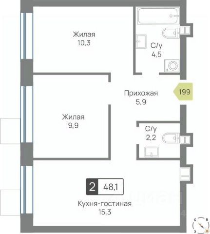 Продаётся 2-комнатная квартира 73, площадью 43,25 м², на 1 этаже в ЖК "Аникеевский" корпус 12/1. Стоимость — от 9617994 руб. Квартира без отделки, планировка распашная, окна во двор.