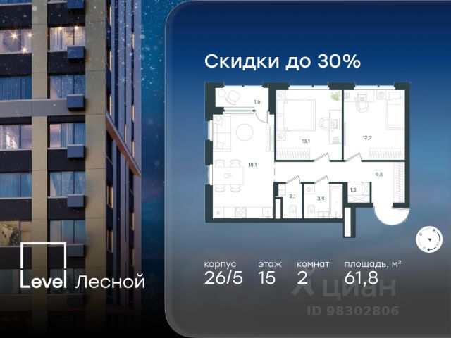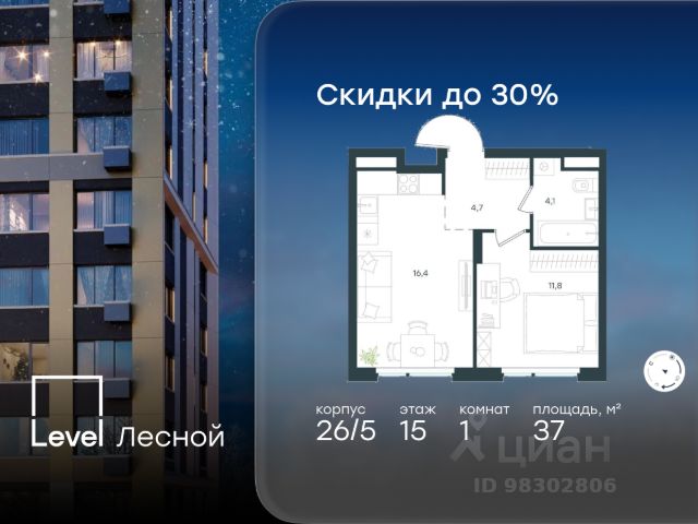 Цена указана с учётом скидки при 100%-й оплате, несубсидированной ипотеке, рассрочке (кроме программы "Рассрочка 0%"). В районе, утопающем в густой зелени лесов, многочисленных парков и скверов, продаётся 4-комнатная квартира площадью 96.60 кв.м с отделкой white box. Квартира расположена на 9 этаже в жилом комплексе комфорт-класса Level Лесной (компания Level Group/Левел групп). Отличная транспортная доступность: - 25 мин. пешком до станции метро "Пятницкое шоссе"; - 28 мин. на автобусе до станции метро и МЦД-2 "Волоколамская"; - 11 мин. на авто до МКАД; - 25 мин. на авто до ТТК. Продуманный архитектурный проект: - Концепция проекта Level Лесной от бюро СПИЧ; - Высотность комплекса до 15 этажей с уникальными видами на лесные массивы и город; - Высота потолков до 3 м; - Современные окна высотой до 1,6 м, в части квартир предусмотрены окна в пол. Высота подоконников 0,6 м; Расположение: Level Лесной строится в зелёной зоне ближайшего Подмосковья, г.о. Красногорск в посёлке Отрадное. Шаговая и автомобильная доступность до метро и больших транспортных артерий города. За 25 минут вы дойдёте до станции метро "Пятницкое шоссе", а за 20 минут на машине сможете доехать до станции метро "Тушинская". Район окружен роскошной зеленью лесов и парковых зон, занимающих территорию свыше 1 000 гектаров. Помимо благоприятной экологии, здесь множество возможностей для активного отдыха и поддержания физической формы. Облагороженная территории с полностью развитой инфраструктурой. На территории проекта находится детский сад и школа "Светлые Горы", которая входит в список лучших частных школ от Forbes Education (по данным на 2023г.). Кроме того, в пешей доступности расположено ещё 8 детских садов, а также запланировано открытие современной муниципальной школы. В непосредственной близости находятся сетевые супермаркеты и локальные магазины, аптеки, клиники, почта, библиотека, салоны красоты, рестораны, спортивные и творческие секции, развивающие детские центры. В 12 минутах пешком расположен торговый парк "Отрада" с продуктовым и строительным гипермаркетами, магазинами, кинотеатром и развлечениями для детей. Внутренняя инфраструктура: Мы знаем, как важно, чтобы магазины и сервисы были всегда рядом. В сданных корпусах Level Лесной уже расположена полностью готовая развитая инфраструктура. На первых этажах корпуса 27 предусмотрено ещё 14 коммерческих помещений. Благоустройство: Продуманное пространство и аура приватного европейского городка рождают чувство лёгкости и расслабления у каждого, кто попадает на территорию проекта. Концепцию общественных площадок разработали в партнёрстве два архитектурных бюро: Highlight Architecture и SCAPE. В безопасных дворах без машин каждый обязательно найдёт себе место для вдохновения, отдыха и спорта.