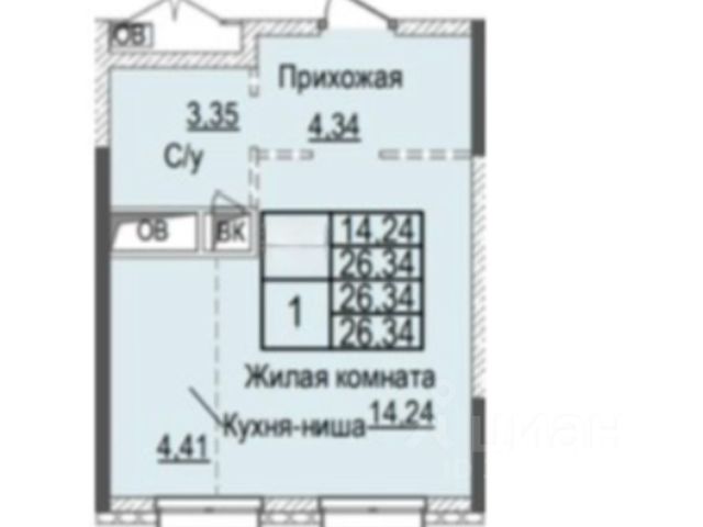 Продается квартира-студия на 4-м этаже 14-этажного нового дома в корпусе 1.1 в ЖК "Аникеевский".