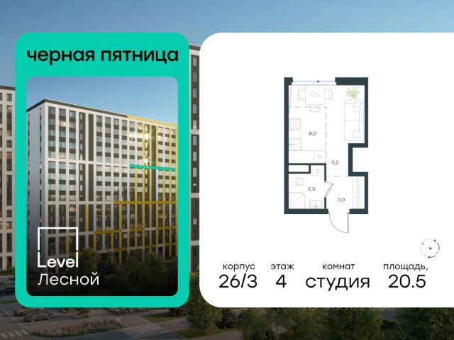 Цена указана с учётом скидки при 100%-й оплате, несубсидированной ипотеке, рассрочке (кроме программы "Рассрочка 0%"). Субсидированная семейная ипотека. Полная стоимость кредита 20,963 - 23,237% годовых. Ставка 3,9% годовых. Первоначальный взнос от 20,01%. Сумма кредита до 12 млн. руб. В районе, утопающем в густой зелени лесов, многочисленных парков и скверов, продаётся студия площадью 20.50 кв.м без отделки. Квартира расположена на 4 этаже в жилом комплексе комфорт-класса Level Лесной (компания Level Group/Левел групп). Отличная транспортная доступность: - 25 мин. пешком до станции метро "Пятницкое шоссе"; - 28 мин. на автобусе до станции метро и МЦД-2 "Волоколамская"; - 11 мин. на авто до МКАД; - 25 мин. на авто до ТТК. Продуманный архитектурный проект: - Концепция проекта Level Лесной от бюро СПИЧ; - Высотность комплекса до 15 этажей с уникальными видами на лесные массивы и город; - Высота потолков до 3 м; - Современные окна высотой до 1,6 м, в части квартир предусмотрены окна в пол. Высота подоконников 0,6 м; Расположение: Level Лесной строится в зелёной зоне ближайшего Подмосковья, г.о. Красногорск в посёлке Отрадное. Шаговая и автомобильная доступность до метро и больших транспортных артерий города. За 25 минут вы дойдёте до станции метро "Пятницкое шоссе", а за 20 минут на машине сможете доехать до станции метро "Тушинская". Район окружен роскошной зеленью лесов и парковых зон, занимающих территорию свыше 1 000 гектаров. Помимо благоприятной экологии, здесь множество возможностей для активного отдыха и поддержания физической формы. Облагороженная территории с полностью развитой инфраструктурой. На территории проекта находится детский сад и школа "Светлые Горы", которая входит в список лучших частных школ от Forbes Education (по данным на 2023г.). Кроме того, в пешей доступности расположено ещё 8 детских садов, а также запланировано открытие современной муниципальной школы. В непосредственной близости находятся сетевые супермаркеты и локальные магазины, аптеки, клиники, почта, библиотека, салоны красоты, рестораны, спортивные и творческие секции, развивающие детские центры. В 12 минутах пешком расположен торговый парк "Отрада" с продуктовым и строительным гипермаркетами, магазинами, кинотеатром и развлечениями для детей. Внутренняя инфраструктура: Мы знаем, как важно, чтобы магазины и сервисы были всегда рядом. В сданных корпусах Level Лесной уже расположена полностью готовая развитая инфраструктура. На первых этажах корпуса 27 предусмотрено ещё 14 коммерческих помещений. Благоустройство: Продуманное пространство и аура приватного европейского городка рождают чувство лёгкости и расслабления у каждого, кто попадает на территорию проекта. Концепцию общественных площадок разработали в партнёрстве два архитектурных бюро: Highlight Architecture и SCAPE. В безопасных дворах без машин каждый обязательно найдёт себе место для вдохновения, отдыха и спорта.