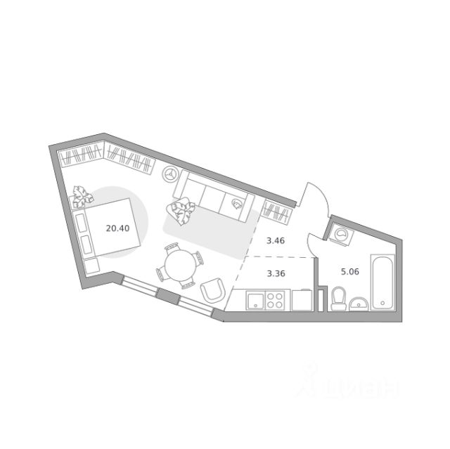 Продаётся студия 5, площадью 28,05 м², на 1 этаже в ЖК "Аникеевский" корпус 7. Стоимость — от 6334010 руб. Квартира без отделки, планировка односторонняя, окна на улицу.