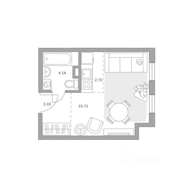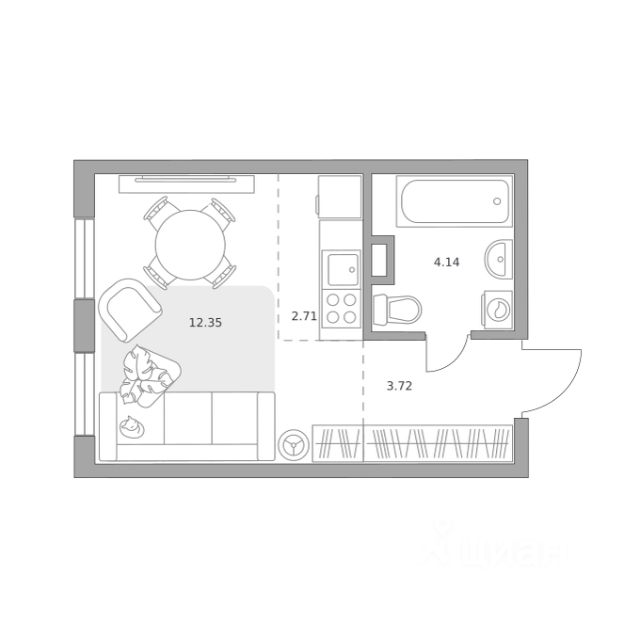 Продаётся студия 1, площадью 28,45 м², на 1 этаже в ЖК "Аникеевский" корпус 12/2. Стоимость — от 6570712 руб. Квартира без отделки, планировка односторонняя, окна во двор.