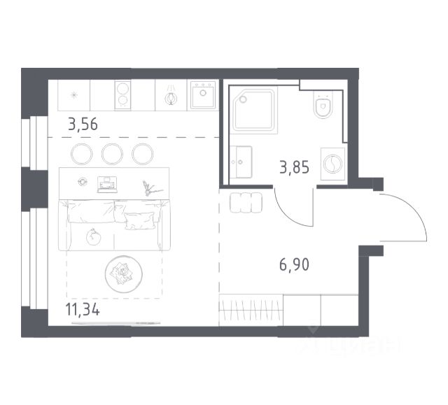 Продаётся студия 635, площадью 24,33 м², на 14 этаже в ЖК "Ильинойс" корпус 3. Стоимость — от 6424986 руб. Квартира без отделки, планировка односторонняя, окна во двор.