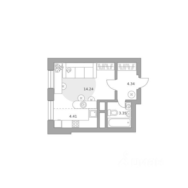 Продаётся студия 210, площадью 24,80 м², на 14 этаже в ЖК "Аникеевский" корпус 1.1. Стоимость — от 5791291 руб. Квартира без отделки, планировка односторонняя, окна на улицу.