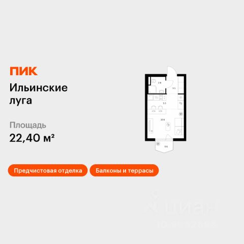 Продаётся квартира-студия площадью 24,2 кв.м на 2 этаже 9 этажного дома (Корпус 4.3, Секция 5) проекта ПИК Ильинские луга. Светлый просторный подъезд на уровне земли, функциональная планировка, большие окна, предчистовая отделка. Жилой район "Ильинские луга" находится в 10 километрах от МКАД по Новорижскому шоссе, в 20 минутах на автомобиле от станций метро "Волоколамская", "Тушинская" и "Строгино". В будущем ближе к проекту, в 9 минутах пути на машине, откроется станция "Ильинская" Рублёво-Архангельской линии, которая будет соединять Арбатско-Покровскую линию и Большую кольцевую линию. Сейчас в квартале начались продажи в корпусах 3.2, 3.3, 3.4, 3.5 и 3.6. "Ильинские луга" — масштабный проект, в который входит девять детских садов, четыре школы и поликлиника. Он строится в престижном и экологичном районе среди лесов и памятников природы. За 5 минут от жилого квартала можно доехать до Рублёво-Успенского шоссе, а за 30 минут — до центра Москвы. До крупного торгового центра "РИГАМОЛЛ" всего 5 минут на автомобиле, а до ТЦ "Твой дом" и гипермаркета "Глобус" — 10 минут. В "Ильинских лугах" строятся только девятиэтажные дома — такая архитектура соответствует спокойной жизни за городом. В каждом дворе-парке есть места для отдыха, детские и спортивные площадки. А ещё, здесь уже открыт большой PlayHub "Гравити" — современное игровое пространство с космической тематикой, холмами, зонами для игр и отдыха жителей любого возраста. На первых этажах уже работают магазины, кафе и пекарни. Места для отдыха от "Ильинских лугов" тоже недалеко: 10 минут на машине — и вы в музее-усадьбе "Архангельское". Также рядом находится Лохин остров — памятник природы, где водятся речные черепахи, есть места для кемпинга и возможность сплавиться по реке. Артикул 1012215 (Застройщик ООО "СЗ "ГРАДОЛИМП")