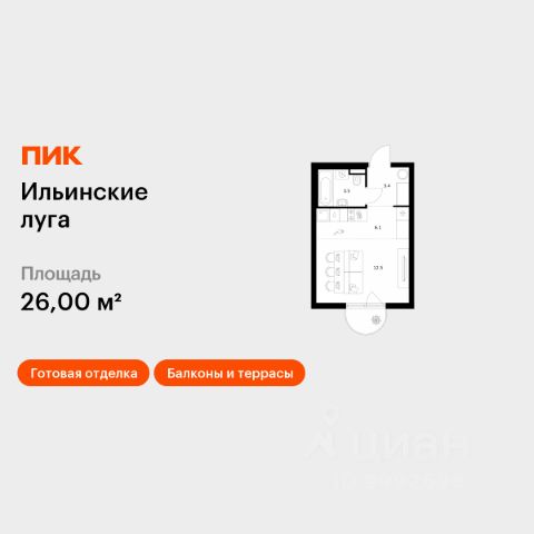 Продаётся квартира-студия площадью 19,9 кв.м на 2 этаже 9 этажного дома (Корпус 3.5, Секция 5) проекта ПИК Ильинские луга. Светлый просторный подъезд на уровне земли, функциональная планировка, большие окна, c отделкой. Жилой район "Ильинские луга" находится в 10 километрах от МКАД по Новорижскому шоссе, в 20 минутах на автомобиле от станций метро "Волоколамская", "Тушинская" и "Строгино". В будущем ближе к проекту, в 9 минутах пути на машине, откроется станция "Ильинская" Рублёво-Архангельской линии, которая будет соединять Арбатско-Покровскую линию и Большую кольцевую линию. Сейчас в квартале начались продажи в корпусах 3.2, 3.3, 3.4, 3.5 и 3.6. "Ильинские луга" — масштабный проект, в который входит девять детских садов, четыре школы и поликлиника. Он строится в престижном и экологичном районе среди лесов и памятников природы. За 5 минут от жилого квартала можно доехать до Рублёво-Успенского шоссе, а за 30 минут — до центра Москвы. До крупного торгового центра "РИГАМОЛЛ" всего 5 минут на автомобиле, а до ТЦ "Твой дом" и гипермаркета "Глобус" — 10 минут. В "Ильинских лугах" строятся только девятиэтажные дома — такая архитектура соответствует спокойной жизни за городом. В каждом дворе-парке есть места для отдыха, детские и спортивные площадки. А ещё, здесь уже открыт большой PlayHub "Гравити" — современное игровое пространство с космической тематикой, холмами, зонами для игр и отдыха жителей любого возраста. На первых этажах уже работают магазины, кафе и пекарни. Места для отдыха от "Ильинских лугов" тоже недалеко: 10 минут на машине — и вы в музее-усадьбе "Архангельское". Также рядом находится Лохин остров — памятник природы, где водятся речные черепахи, есть места для кемпинга и возможность сплавиться по реке. Артикул 1001892 (Застройщик ООО "СЗ "ГРАДОЛИМП")