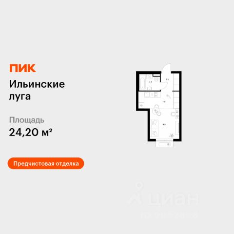 Продаётся квартира-студия площадью 24,2 кв.м на 2 этаже 9 этажного дома (Корпус 4.3, Секция 5) проекта ПИК Ильинские луга. Светлый просторный подъезд на уровне земли, функциональная планировка, большие окна, предчистовая отделка. Жилой район "Ильинские луга" находится в 10 километрах от МКАД по Новорижскому шоссе, в 20 минутах на автомобиле от станций метро "Волоколамская", "Тушинская" и "Строгино". В будущем ближе к проекту, в 9 минутах пути на машине, откроется станция "Ильинская" Рублёво-Архангельской линии, которая будет соединять Арбатско-Покровскую линию и Большую кольцевую линию. Сейчас в квартале начались продажи в корпусах 3.2, 3.3, 3.4, 3.5 и 3.6. "Ильинские луга" — масштабный проект, в который входит девять детских садов, четыре школы и поликлиника. Он строится в престижном и экологичном районе среди лесов и памятников природы. За 5 минут от жилого квартала можно доехать до Рублёво-Успенского шоссе, а за 30 минут — до центра Москвы. До крупного торгового центра "РИГАМОЛЛ" всего 5 минут на автомобиле, а до ТЦ "Твой дом" и гипермаркета "Глобус" — 10 минут. В "Ильинских лугах" строятся только девятиэтажные дома — такая архитектура соответствует спокойной жизни за городом. В каждом дворе-парке есть места для отдыха, детские и спортивные площадки. А ещё, здесь уже открыт большой PlayHub "Гравити" — современное игровое пространство с космической тематикой, холмами, зонами для игр и отдыха жителей любого возраста. На первых этажах уже работают магазины, кафе и пекарни. Места для отдыха от "Ильинских лугов" тоже недалеко: 10 минут на машине — и вы в музее-усадьбе "Архангельское". Также рядом находится Лохин остров — памятник природы, где водятся речные черепахи, есть места для кемпинга и возможность сплавиться по реке. Артикул 1012215 (Застройщик ООО "СЗ "ГРАДОЛИМП")