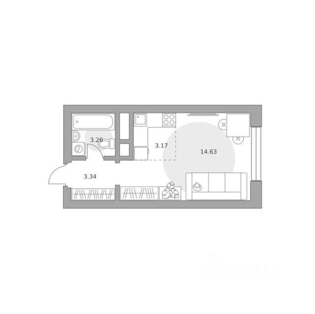Продаётся студия 774, площадью 26,28 м², на 2 этаже в ЖК "Ильинойс" корпус 3. Стоимость — от 6592939 руб. Квартира без отделки, планировка односторонняя, окна во двор.