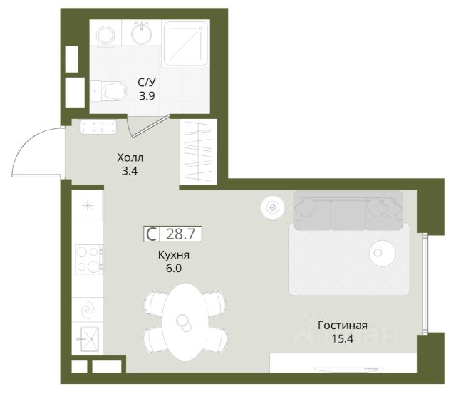 • ✅ Минимальная площадь: 19,2 м²