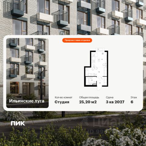 Продаётся квартира-студия площадью 21,8 кв.м на 6 этаже 9 этажного дома (Корпус 3.5, Секция 1) проекта ПИК Ильинские луга. Светлый просторный подъезд на уровне земли, функциональная планировка, большие окна, предчистовая отделка. Жилой район "Ильинские луга" находится в 10 километрах от МКАД по Новорижскому шоссе, в 20 минутах на автомобиле от станций метро "Волоколамская", "Тушинская" и "Строгино". В будущем ближе к проекту, в 9 минутах пути на машине, откроется станция "Ильинская" Рублёво-Архангельской линии, которая будет соединять Арбатско-Покровскую линию и Большую кольцевую линию. Сейчас в квартале начались продажи в корпусах 3.2, 3.3, 3.4, 3.5 и 3.6. "Ильинские луга" — масштабный проект, в который входит девять детских садов, четыре школы и поликлиника. Он строится в престижном и экологичном районе среди лесов и памятников природы. За 5 минут от жилого квартала можно доехать до Рублёво-Успенского шоссе, а за 30 минут — до центра Москвы. До крупного торгового центра "РИГАМОЛЛ" всего 5 минут на автомобиле, а до ТЦ "Твой дом" и гипермаркета "Глобус" — 10 минут. В "Ильинских лугах" строятся только девятиэтажные дома — такая архитектура соответствует спокойной жизни за городом. В каждом дворе-парке есть места для отдыха, детские и спортивные площадки. А ещё, здесь уже открыт большой PlayHub "Гравити" — современное игровое пространство с космической тематикой, холмами, зонами для игр и отдыха жителей любого возраста. На первых этажах уже работают магазины, кафе и пекарни. Места для отдыха от "Ильинских лугов" тоже недалеко: 10 минут на машине — и вы в музее-усадьбе "Архангельское". Также рядом находится Лохин остров — памятник природы, где водятся речные черепахи, есть места для кемпинга и возможность сплавиться по реке. Артикул 1001411 (Застройщик ООО "СЗ "ГРАДОЛИМП")