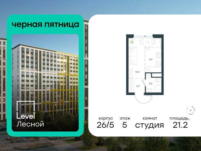 Цена указана с учётом скидки при 100%-й оплате, несубсидированной ипотеке, рассрочке (кроме программы "Рассрочка 0%"). Субсидированная семейная ипотека. Полная стоимость кредита 20,963 - 23,237% годовых. Ставка 3,9% годовых. Первоначальный взнос от 20,01%. Сумма кредита до 12 млн. руб. В районе, утопающем в густой зелени лесов, многочисленных парков и скверов, продаётся студия площадью 29.50 кв.м без отделки. Квартира расположена на 14 этаже в жилом комплексе комфорт-класса Level Лесной (компания Level Group/Левел групп). Отличная транспортная доступность: - 25 мин. пешком до станции метро "Пятницкое шоссе"; - 28 мин. на автобусе до станции метро и МЦД-2 "Волоколамская"; - 11 мин. на авто до МКАД; - 25 мин. на авто до ТТК. Продуманный архитектурный проект: - Концепция проекта Level Лесной от бюро СПИЧ; - Высотность комплекса до 15 этажей с уникальными видами на лесные массивы и город; - Высота потолков до 3 м; - Современные окна высотой до 1,6 м, в части квартир предусмотрены окна в пол. Высота подоконников 0,6 м; Расположение: Level Лесной строится в зелёной зоне ближайшего Подмосковья, г.о. Красногорск в посёлке Отрадное. Шаговая и автомобильная доступность до метро и больших транспортных артерий города. За 25 минут вы дойдёте до станции метро "Пятницкое шоссе", а за 20 минут на машине сможете доехать до станции метро "Тушинская". Район окружен роскошной зеленью лесов и парковых зон, занимающих территорию свыше 1 000 гектаров. Помимо благоприятной экологии, здесь множество возможностей для активного отдыха и поддержания физической формы. Облагороженная территории с полностью развитой инфраструктурой. На территории проекта находится детский сад и школа "Светлые Горы", которая входит в список лучших частных школ от Forbes Education (по данным на 2023г.). Кроме того, в пешей доступности расположено ещё 8 детских садов, а также запланировано открытие современной муниципальной школы. В непосредственной близости находятся сетевые супермаркеты и локальные магазины, аптеки, клиники, почта, библиотека, салоны красоты, рестораны, спортивные и творческие секции, развивающие детские центры. В 12 минутах пешком расположен торговый парк "Отрада" с продуктовым и строительным гипермаркетами, магазинами, кинотеатром и развлечениями для детей. Внутренняя инфраструктура: Мы знаем, как важно, чтобы магазины и сервисы были всегда рядом. В сданных корпусах Level Лесной уже расположена полностью готовая развитая инфраструктура. На первых этажах корпуса 27 предусмотрено ещё 14 коммерческих помещений. Благоустройство: Продуманное пространство и аура приватного европейского городка рождают чувство лёгкости и расслабления у каждого, кто попадает на территорию проекта. Концепцию общественных площадок разработали в партнёрстве два архитектурных бюро: Highlight Architecture и SCAPE. В безопасных дворах без машин каждый обязательно найдёт себе место для вдохновения, отдыха и спорта.