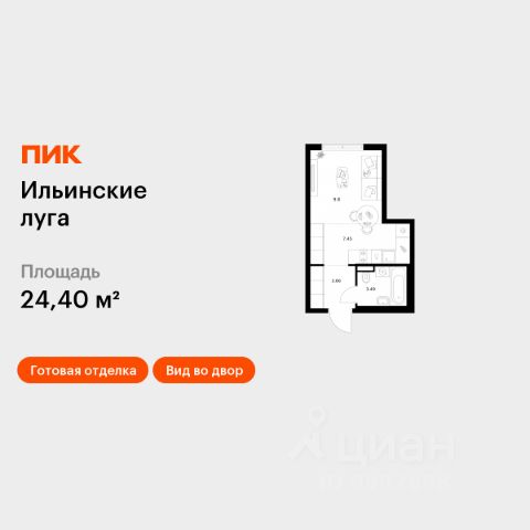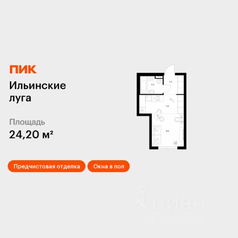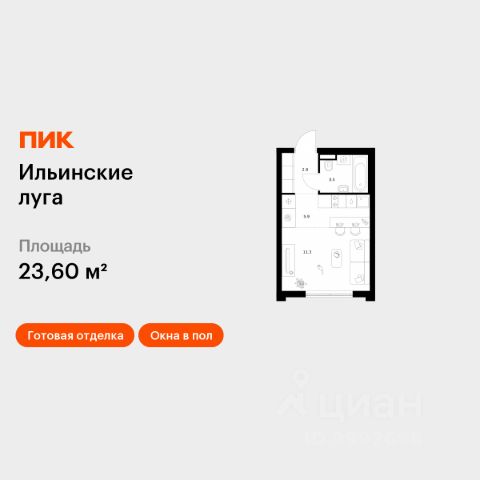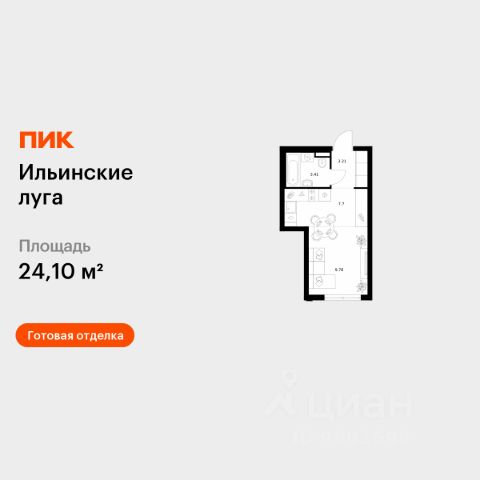 Продаётся квартира-студия площадью 23,5 кв.м на 9 этаже 9 этажного дома (Корпус 2.13, Секция 1) проекта ПИК Ильинские луга. Светлый просторный подъезд на уровне земли, функциональная планировка, большие окна, c отделкой. Жилой район "Ильинские луга" находится в 10 километрах от МКАД по Новорижскому шоссе, в 20 минутах на автомобиле от станций метро "Волоколамская", "Тушинская" и "Строгино". В будущем ближе к проекту, в 9 минутах пути на машине, откроется станция "Ильинская" Рублёво-Архангельской линии, которая будет соединять Арбатско-Покровскую линию и Большую кольцевую линию. Сейчас в квартале начались продажи в корпусах 3.2, 3.3, 3.4, 3.5 и 3.6. "Ильинские луга" — масштабный проект, в который входит девять детских садов, четыре школы и поликлиника. Он строится в престижном и экологичном районе среди лесов и памятников природы. За 5 минут от жилого квартала можно доехать до Рублёво-Успенского шоссе, а за 30 минут — до центра Москвы. До крупного торгового центра "РИГАМОЛЛ" всего 5 минут на автомобиле, а до ТЦ "Твой дом" и гипермаркета "Глобус" — 10 минут. В "Ильинских лугах" строятся только девятиэтажные дома — такая архитектура соответствует спокойной жизни за городом. В каждом дворе-парке есть места для отдыха, детские и спортивные площадки. А ещё, здесь уже открыт большой PlayHub "Гравити" — современное игровое пространство с космической тематикой, холмами, зонами для игр и отдыха жителей любого возраста. На первых этажах уже работают магазины, кафе и пекарни. Места для отдыха от "Ильинских лугов" тоже недалеко: 10 минут на машине — и вы в музее-усадьбе "Архангельское". Также рядом находится Лохин остров — памятник природы, где водятся речные черепахи, есть места для кемпинга и возможность сплавиться по реке. Артикул 927539 (Застройщик ООО "СЗ "ГРАДОЛИМП")