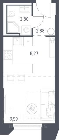 Продаётся студия 828, площадью 26,28 м², на 8 этаже в ЖК "Ильинойс" корпус 3. Стоимость — от 7079026 руб. Квартира без отделки, планировка односторонняя, окна во двор.