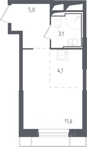 Продаётся студия 966, площадью 21,44 м², на 23 этаже в ЖК "Ильинойс" корпус 3. Стоимость — от 6116884 руб. Квартира без отделки, планировка односторонняя, окна на улицу.