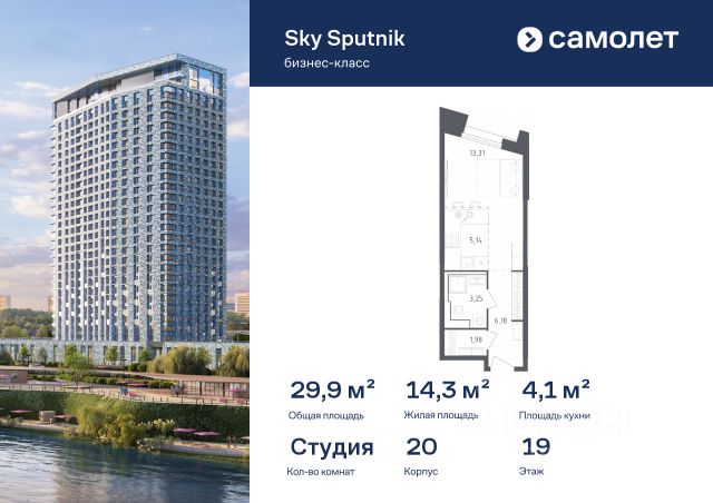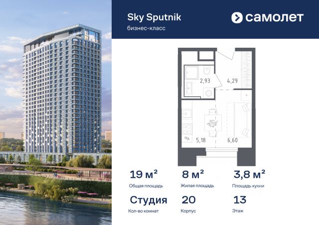 - студия общей площадью 21, 8 кв. м.