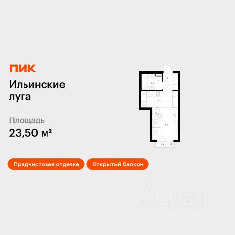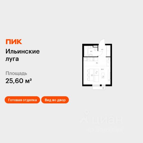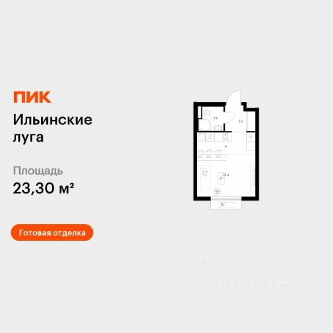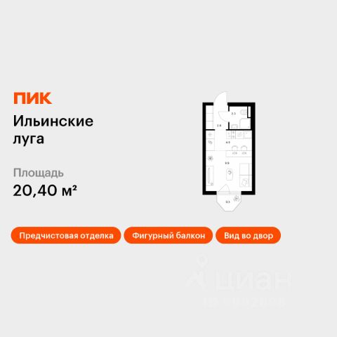 Продаётся квартира-студия площадью 21,8 кв.м на 6 этаже 9 этажного дома (Корпус 3.5, Секция 1) проекта ПИК Ильинские луга. Светлый просторный подъезд на уровне земли, функциональная планировка, большие окна, предчистовая отделка. Жилой район "Ильинские луга" находится в 10 километрах от МКАД по Новорижскому шоссе, в 20 минутах на автомобиле от станций метро "Волоколамская", "Тушинская" и "Строгино". В будущем ближе к проекту, в 9 минутах пути на машине, откроется станция "Ильинская" Рублёво-Архангельской линии, которая будет соединять Арбатско-Покровскую линию и Большую кольцевую линию. Сейчас в квартале начались продажи в корпусах 3.2, 3.3, 3.4, 3.5 и 3.6. "Ильинские луга" — масштабный проект, в который входит девять детских садов, четыре школы и поликлиника. Он строится в престижном и экологичном районе среди лесов и памятников природы. За 5 минут от жилого квартала можно доехать до Рублёво-Успенского шоссе, а за 30 минут — до центра Москвы. До крупного торгового центра "РИГАМОЛЛ" всего 5 минут на автомобиле, а до ТЦ "Твой дом" и гипермаркета "Глобус" — 10 минут. В "Ильинских лугах" строятся только девятиэтажные дома — такая архитектура соответствует спокойной жизни за городом. В каждом дворе-парке есть места для отдыха, детские и спортивные площадки. А ещё, здесь уже открыт большой PlayHub "Гравити" — современное игровое пространство с космической тематикой, холмами, зонами для игр и отдыха жителей любого возраста. На первых этажах уже работают магазины, кафе и пекарни. Места для отдыха от "Ильинских лугов" тоже недалеко: 10 минут на машине — и вы в музее-усадьбе "Архангельское". Также рядом находится Лохин остров — памятник природы, где водятся речные черепахи, есть места для кемпинга и возможность сплавиться по реке. Артикул 1001411 (Застройщик ООО "СЗ "ГРАДОЛИМП") Продается квартира-студия в новостройке в поселке Ильинское-Усово Московской области.