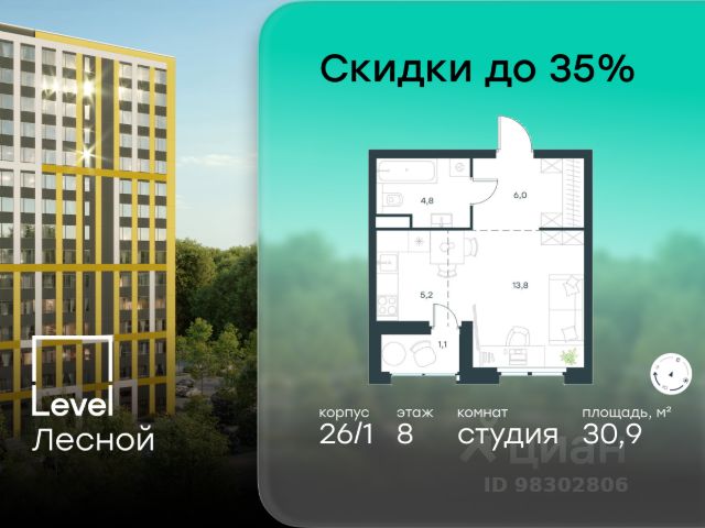 на 7 этаже из 9, секция 2, в ЖК Riga Hills площадью 34.53 кв.м. ЖК Riga Hills (Рига Хиллс) яркий жилой комплекс бизнес-класса в экологически чистом районе Подмосковья, всего в 12 км от МКАД по Новорижскому шоссе.