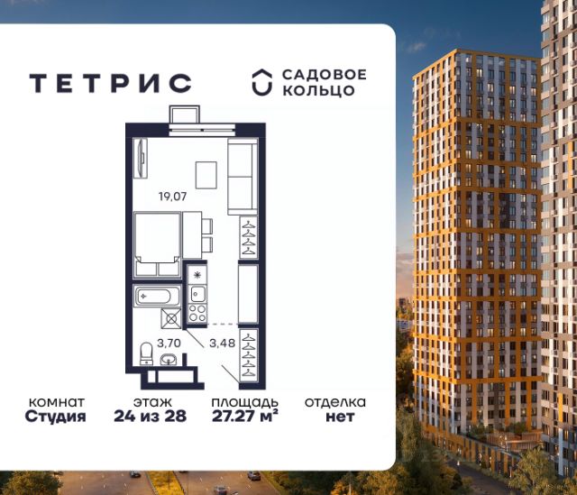 Продается квартира в ЖК Тетрис студия на 2 этаже 28 этажного дома. Общая площадь: 27.65 кв.м. Высота потолков 2.95 м. Срок сдачи 2 квартал 2026 г. Эскроу-счет. Застройщик ГК "Садовое кольцо". Семейный жилой комплекс "Тетрис" с собственной развитой инфраструктурой, благоустроенным двором и функциональными планировочными решениями. Собственный двор-парк, детские и спортивные площадки. Продуманные зоны отдыха с ландшафтным дизайном. Охраняемая дворовая территория и круглосуточное видеонаблюдение. Рядом удобная транспортная развязка и станция МЦД Павшино. ЖК "Тетрис" объединяет все важнейшие факторы, формирующие комфорт: Просторный обустроенный двор — место, где весело проводить время с друзьями и семьей. Свой торговый центр, чтобы любая мелочь была под рукой. Удобная локация и транспортная доступность. Свои медицинский центр и школа с блоком начальных классов. Жилой комплекс "Тетрис" обеспечит вам идеальное пространство для жизни, где все необходимое под рукой. Благодаря этому вы получаете самый драгоценный ресурс - время на общение с друзьями и семьей, заботу о себе и личное развитие. Купить квартиру-студию от застройщика в Красногорске.