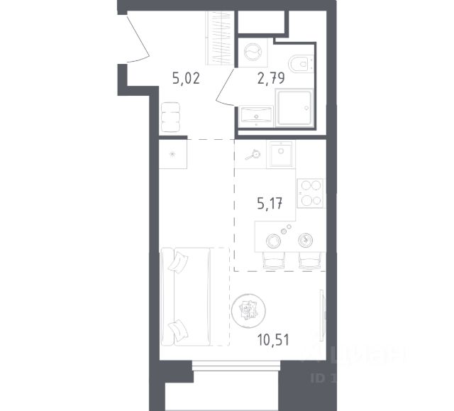 Продаётся студия 542, площадью 24,33 м², на 7 этаже в ЖК "Ильинойс" корпус 3. Стоимость — от 6750274 руб. Квартира без отделки, планировка односторонняя, окна во двор.