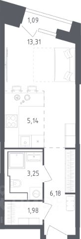 Продаётся студия 819, площадью 26,28 м², на 7 этаже в ЖК "Ильинойс" корпус 3. Стоимость — от 6642049 руб. Квартира без отделки, планировка односторонняя, окна во двор.