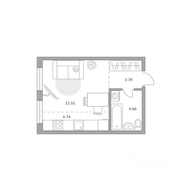 Продаётся студия 466, площадью 24,10 м², на 4 этаже в ЖК "Аникеевский" корпус 1.2. Стоимость — от 5303837 руб. Квартира без отделки, планировка односторонняя, окна во двор.