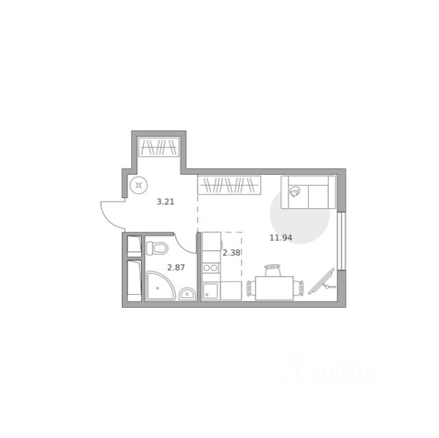 Продаётся студия 21, площадью 22,99 м², на 3 этаже в ЖК "Аникеевский" корпус 1.2. Стоимость — от 6192801 руб. Квартира с отделкой, планировка односторонняя, окна во двор.