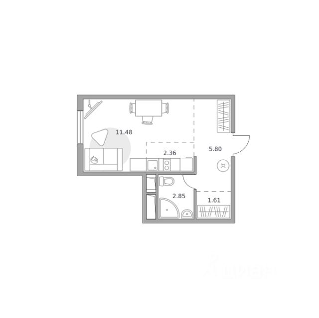Продаётся студия 357, площадью 27,29 м², на 10 этаже в ЖК "Аникеевский" корпус 1.2. Стоимость — от 6087408 руб. Квартира без отделки, планировка угловая, окна на улицу.