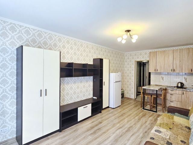 Можно сразу заселиться, есть всё необходимое для комфортного проживания: кухонный гарнитур, 2х-комфорочная электрическая варочная панель, холодильник, большой раскладной стол, стулья, стиральная машина, тумба для ванной комнаты, стойка-гардероб для одежды, вешалка с тумбой в коридоре, всё новое. На первое время имеются две односпальные кровати.