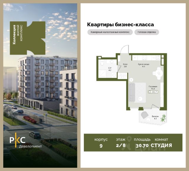 Продается уютная студия на 2 этаже от застройщика. Общая площадь 28,3 кв.м. На выбор представлены 3 вида дизайнерской отделки с использованием качественных материалов. Высота потолков 3 м. ЖК "Коллекция" расположен на северо-западе от Москвы, в поселке Нахабино, всего 13 км от МКАД. Прекрасная экология и живописная природа, отсутствие промышленных зон и вредных предприятий. В проекте планируется строительство 5 корпусов средней этажностью (4-8 этажей) с террасами на угловых секциях и торцевых частях зданий, строительство собственной инфраструктуры: три детских сада, школа, поликлиника, физкультурно-оздоровительный комплекс. Жителям будут доступны машино-места в подземном паркинге, кладовые помещения. Удобная транспортная доступность позволит Вам доехать на автомобиле за 26 минут до метро "Митино", 30 минут до метро "Пятницкое шоссе", дойти до станции МЦД-2 Нахабино за 29 минут. В ближайшей перспективе - расширение местной дорожной сети и запуск новых маршрутов до ж/д станций и станций метро. Благоустроенная территория двора, позволит Вам не покидать сам жилой комплекс. Масштабное озеленение и множество площадок отдыха для взрослых и детей. Детские площадки выполнены в природных материалах, игровые комплексы с бизибордами, развивающие игровые установки для игр с песком. Спортивная инфраструктура: столы для настольного тенниса, тренажеры, гимнастический комплекс. Особую прелесть комплексу придает близость зеленых массивов. В пешей доступности находятся парк Дружба, загородный клуб "Moscow Country Club", парк имени Карбышева. Это располагает к приятным прогулкам и спокойному отдыху жителей комплекса. Купить квартиру-студию с евроремонтом в городском округе Красногорске Московской области.