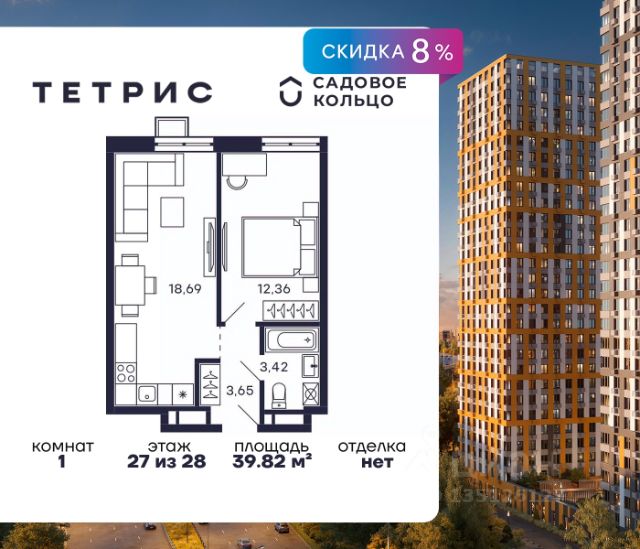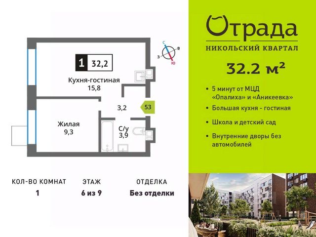 Продаётся 1-комнатная квартира в сданном доме (Ангелово-Резиденц, 49 (Дом 49)), срок сдачи: II-кв. 2025, общей площадью 39.7 кв.м., на 3 этаже. Расположение, транспортная доступность