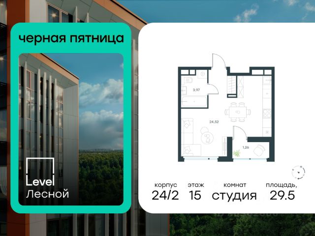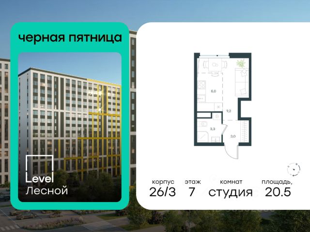 Цена указана с учётом скидки при 100%-й оплате, несубсидированной ипотеке, рассрочке (кроме программы "Рассрочка 0%"). Субсидированная семейная ипотека. Полная стоимость кредита 20,963 - 23,237% годовых. Ставка 3,9% годовых. Первоначальный взнос от 20,01%. Сумма кредита до 12 млн. руб. В районе, утопающем в густой зелени лесов, многочисленных парков и скверов, продаётся студия площадью 21.60 кв.м без отделки. Квартира расположена на 3 этаже в жилом комплексе комфорт-класса Level Лесной (компания Level Group/Левел групп). Отличная транспортная доступность: - 25 мин. пешком до станции метро "Пятницкое шоссе"; - 28 мин. на автобусе до станции метро и МЦД-2 "Волоколамская"; - 11 мин. на авто до МКАД; - 25 мин. на авто до ТТК. Продуманный архитектурный проект: - Концепция проекта Level Лесной от бюро СПИЧ; - Высотность комплекса до 15 этажей с уникальными видами на лесные массивы и город; - Высота потолков до 3 м; - Современные окна высотой до 1,6 м, в части квартир предусмотрены окна в пол. Высота подоконников 0,6 м; Расположение: Level Лесной строится в зелёной зоне ближайшего Подмосковья, г.о. Красногорск в посёлке Отрадное. Шаговая и автомобильная доступность до метро и больших транспортных артерий города. За 25 минут вы дойдёте до станции метро "Пятницкое шоссе", а за 20 минут на машине сможете доехать до станции метро "Тушинская". Район окружен роскошной зеленью лесов и парковых зон, занимающих территорию свыше 1 000 гектаров. Помимо благоприятной экологии, здесь множество возможностей для активного отдыха и поддержания физической формы. Облагороженная территории с полностью развитой инфраструктурой. На территории проекта находится детский сад и школа "Светлые Горы", которая входит в список лучших частных школ от Forbes Education (по данным на 2023г.). Кроме того, в пешей доступности расположено ещё 8 детских садов, а также запланировано открытие современной муниципальной школы. В непосредственной близости находятся сетевые супермаркеты и локальные магазины, аптеки, клиники, почта, библиотека, салоны красоты, рестораны, спортивные и творческие секции, развивающие детские центры. В 12 минутах пешком расположен торговый парк "Отрада" с продуктовым и строительным гипермаркетами, магазинами, кинотеатром и развлечениями для детей. Внутренняя инфраструктура: Мы знаем, как важно, чтобы магазины и сервисы были всегда рядом. В сданных корпусах Level Лесной уже расположена полностью готовая развитая инфраструктура. На первых этажах корпуса 27 предусмотрено ещё 14 коммерческих помещений. Благоустройство: Продуманное пространство и аура приватного европейского городка рождают чувство лёгкости и расслабления у каждого, кто попадает на территорию проекта. Концепцию общественных площадок разработали в партнёрстве два архитектурных бюро: Highlight Architecture и SCAPE. В безопасных дворах без машин каждый обязательно найдёт себе место для вдохновения, отдыха и спорта.