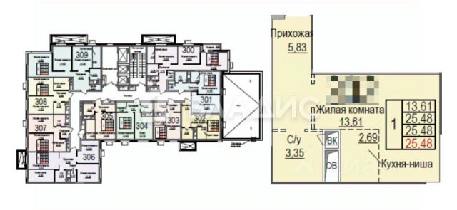 Продаётся студия 837, площадью 26,28 м², на 9 этаже в ЖК "Ильинойс" корпус 3. Стоимость — от 7157536 руб. Квартира без отделки, планировка односторонняя, окна во двор.