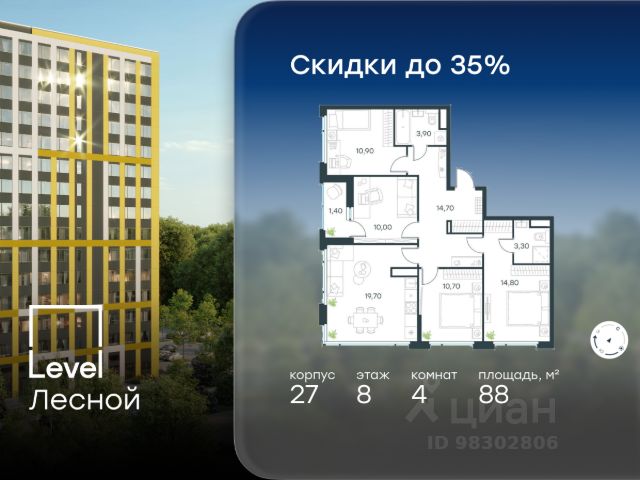 Цена указана с учётом скидки при 100%-й оплате, несубсидированной ипотеке, рассрочке (кроме программы "Рассрочка 0%"). В районе, утопающем в густой зелени лесов, многочисленных парков и скверов, продаётся 1-комнатная квартира площадью 43.00 кв.м без отделки. Квартира расположена на 13 этаже в жилом комплексе комфорт-класса Level Лесной (компания Level Group/Левел групп). Отличная транспортная доступность: - 25 мин. пешком до станции метро "Пятницкое шоссе"; - 28 мин. на автобусе до станции метро и МЦД-2 "Волоколамская"; - 11 мин. на авто до МКАД; - 25 мин. на авто до ТТК. Продуманный архитектурный проект: - Концепция проекта Level Лесной от бюро СПИЧ; - Высотность комплекса до 15 этажей с уникальными видами на лесные массивы и город; - Высота потолков до 3 м; - Современные окна высотой до 1,6 м, в части квартир предусмотрены окна в пол. Высота подоконников 0,6 м; Расположение: Level Лесной строится в зелёной зоне ближайшего Подмосковья, г.о. Красногорск в посёлке Отрадное. Шаговая и автомобильная доступность до метро и больших транспортных артерий города. За 25 минут вы дойдёте до станции метро "Пятницкое шоссе", а за 20 минут на машине сможете доехать до станции метро "Тушинская". Район окружен роскошной зеленью лесов и парковых зон, занимающих территорию свыше 1 000 гектаров. Помимо благоприятной экологии, здесь множество возможностей для активного отдыха и поддержания физической формы. Облагороженная территории с полностью развитой инфраструктурой. На территории проекта находится детский сад и школа "Светлые Горы", которая входит в список лучших частных школ от Forbes Education (по данным на 2023г.). Кроме того, в пешей доступности расположено ещё 8 детских садов, а также запланировано открытие современной муниципальной школы. В непосредственной близости находятся сетевые супермаркеты и локальные магазины, аптеки, клиники, почта, библиотека, салоны красоты, рестораны, спортивные и творческие секции, развивающие детские центры. В 12 минутах пешком расположен торговый парк "Отрада" с продуктовым и строительным гипермаркетами, магазинами, кинотеатром и развлечениями для детей. Внутренняя инфраструктура: Мы знаем, как важно, чтобы магазины и сервисы были всегда рядом. В сданных корпусах Level Лесной уже расположена полностью готовая развитая инфраструктура. На первых этажах корпуса 27 предусмотрено ещё 14 коммерческих помещений. Благоустройство: Продуманное пространство и аура приватного европейского городка рождают чувство лёгкости и расслабления у каждого, кто попадает на территорию проекта. Концепцию общественных площадок разработали в партнёрстве два архитектурных бюро: Highlight Architecture и SCAPE. В безопасных дворах без машин каждый обязательно найдёт себе место для вдохновения, отдыха и спорта.