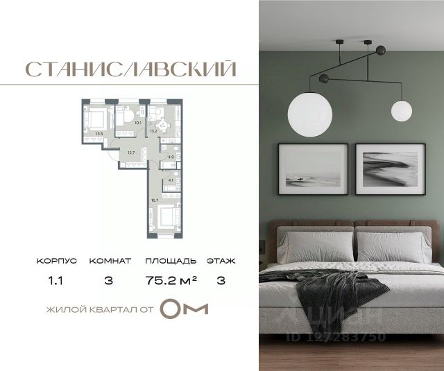 Жилой квартал "Станиславский" - проект бизнес-класса на Новорижском шоссе в 10 минутах от Москвы. Пять малоэтажных домов объединены благоустроенной территорией и собственной инфраструктурой. Ближайшее окружение жилого квартала полноценная городская инфраструктура: общеобразовательная школа, школы танцев и живописи, медицинский центр, фитнес-клуб. В проекте представлены квартиры на любой вкус и состав семьи: студии, классические и европланировки, 4- и 5-комнатные квартиры больше ста метров. Все помещения предлагаются без отделки. Проектом благоустройства предусмотрено функциональное зонирование: зеленые бульвары, природные тропы, интерактивные зоны, центральная площадь с подиумом для мероприятий, спортивный кластер. Для жителей разработаны многообразные сценарии досуга и отдыха: тихие зоны для общения, массажные тропы и сад ароматных трав для оздоровления, всесезонные уличные игры, открытые поляны для спортивных и настольных игр, познавательная зона с огородом, скворечниками и микроскопами. Отдельная фишка ЖК "Станиславский" - welcome-зона жилого комплекса, окруженная живой изгородью, место для встречи гостей и выход на площадку для выгула домашних животных.