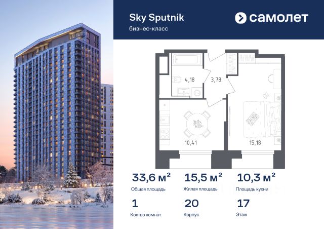 Строим кварталы для жизни с заботой о будущем. Предлагаются 1-комнатные апартаменты бизнес-класса 33,55 кв.м в корпусе 20 на 17 этаже, в Sky Sputnik Апартаменты без отделки. Доступность опции "отделка" и возможность комплектации мебелью и декором уточняйте у застройщика. Прописка не предусмотрена в рамках юридического статуса - апартаменты. Приобрести апартаменты возможно по специальным акциям от застройщика, с текущими условиями акций можно ознакомиться в блоке "Акций". Цена динамическая и может отличаться, уточняйте актуальность у застройщика. Квартал находится на северо-западе Московской области, в 200 км от МКАД. Из окон домов открывается потрясающий вид на парк "Липовая Роща" и Живописную бухту. Уже открыта вся необходимая инфраструктура: 3 детских сада, частная школа, аптеки, коворкинги, магазины и кафе. В 2027 году рядом с проектом появится станция метро "Липовая Роща". До станции метро Строгино можно дойти за 25 минут. Все апартаменты сдаются с отделкой и мебелью.