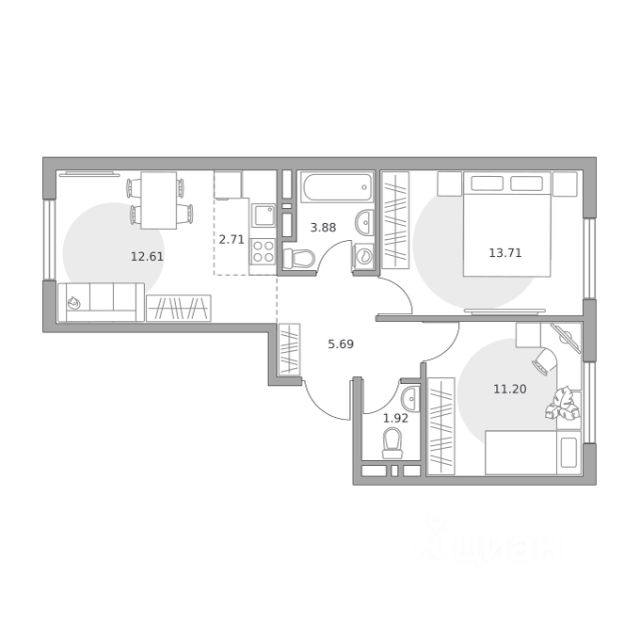 Продаётся 3-комнатная квартира 59, площадью 51,72 м², на 4 этаже в ЖК "Аникеевский" корпус 12/1. Стоимость — от 9968907 руб. Квартира без отделки, планировка распашная, окна во двор.