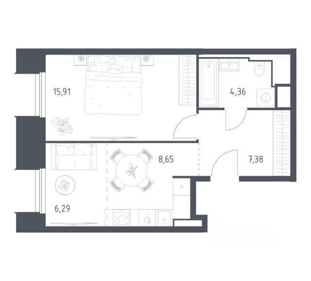 Продаётся студия 4, площадью 22,99 м², на 2 этаже в ЖК "Аникеевский" корпус 1.2. Стоимость — от 6330446 руб. Квартира с отделкой, планировка односторонняя, окна во двор.