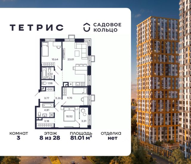 Успейте забронировать по акционной цене! Стоимость квартиры указана со скидкой, ваша выгода составит 1009870 рублей. Предложение ограничено. Звоните, чтобы узнать подробнее! Продается квартира в ЖК Тетрис с 3 спальнями на 8 этаже 28 этажного дома. Общая площадь: 81.01 кв.м. Высота потолков 2.95 м. Срок сдачи 2 квартал 2026 г. Мастер-спальня. Вид на парк. Эскроу-счет. Застройщик ГК "Садовое кольцо". Семейный жилой комплекс "Тетрис" с собственной развитой инфраструктурой, благоустроенным двором и функциональными планировочными решениями. Собственный двор-парк, детские и спортивные площадки. Продуманные зоны отдыха с ландшафтным дизайном. Охраняемая дворовая территория и круглосуточное видеонаблюдение. Рядом удобная транспортная развязка и станция МЦД Павшино. ЖК "Тетрис" объединяет все важнейшие факторы, формирующие комфорт: Просторный обустроенный двор — место, где весело проводить время с друзьями и семьей. Свой торговый центр, чтобы любая мелочь была под рукой. Удобная локация и транспортная доступность. Свои медицинский центр и школа с блоком начальных классов. Жилой комплекс "Тетрис" обеспечит вам идеальное пространство для жизни, где все необходимое под рукой. Благодаря этому вы получаете самый драгоценный ресурс - время на общение с друзьями и семьей, заботу о себе и личное развитие. Продам квартиру квартир в Тетрис в Красногорске.