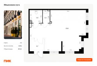 ПСН (помещение свободного назначения) СВОБОДНОЙ планировки в НОВОМ жилом комплексе "Ильинские Луга"!