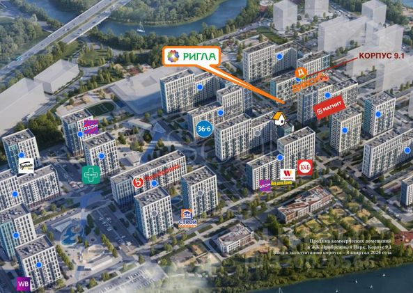 970856 Предлагается к продаже торговое помещение с арендатором — аптекой "Ригла", расположенное в жилом комплексе "Прибрежный Парк" под Москвой.